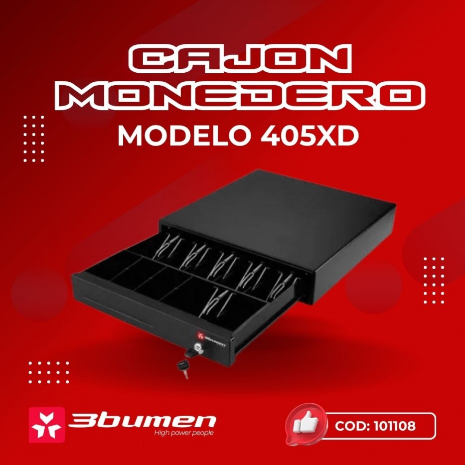 El Cajón Monedero 3BUMEN 405XD está diseñado para ofrecer seguridad, durabilidad y eficiencia en la gestión del efectivo. Fabricado completamente en acero de alta calidad, garantiza una operación suave, resistente y un almacenamiento confiable para billetes, monedas y recibos. Su diseño ergonómico y su compatibilidad con impresoras de recibos mediante puerto RJ11 lo convierten en la opción ideal para negocios minoristas, mayoristas, restaurantes y puntos de venta (POS) que requieren un flujo de caja constante y seguro.
