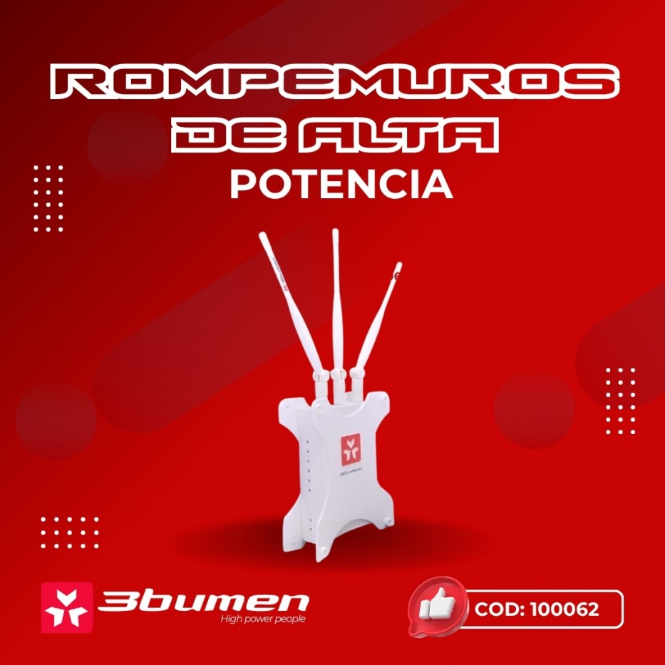 La estación de alta potencia Rompemuros 3BUMEN está diseñada para ofrecer máximo alcance, estabilidad y rendimiento inalámbrico en entornos exigentes.